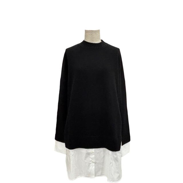 ニットとシャツのドッキングデザインニット サイドのカッティングが◎ シャツ部分にサイドポケットがあります 長めの着丈でざっくりシルエットがかわいいです 素材 ウール80% ナイロン20% 部分 綿97% ポリウレタン3% <SEMICOUTURE/セミクチュール> デザイナーErika Cavalliniが2008年にスタート イタリア発レディースウェアブランド ブランドネーム「セミ・クチュール」とは、オートクチュールに対応した独自の造語で、「オートクチュール」が女性の身体に直接布をあてて立体的に仕立てていくように、「セミクチュール」もまた古くからの手法を用いて人ではなくアンティークのトルソーに布をあてがいながら仕立てていくことから名づけられた。 半分を表す「SEMI」をつけてSEMI-COUTUREとしたそうです