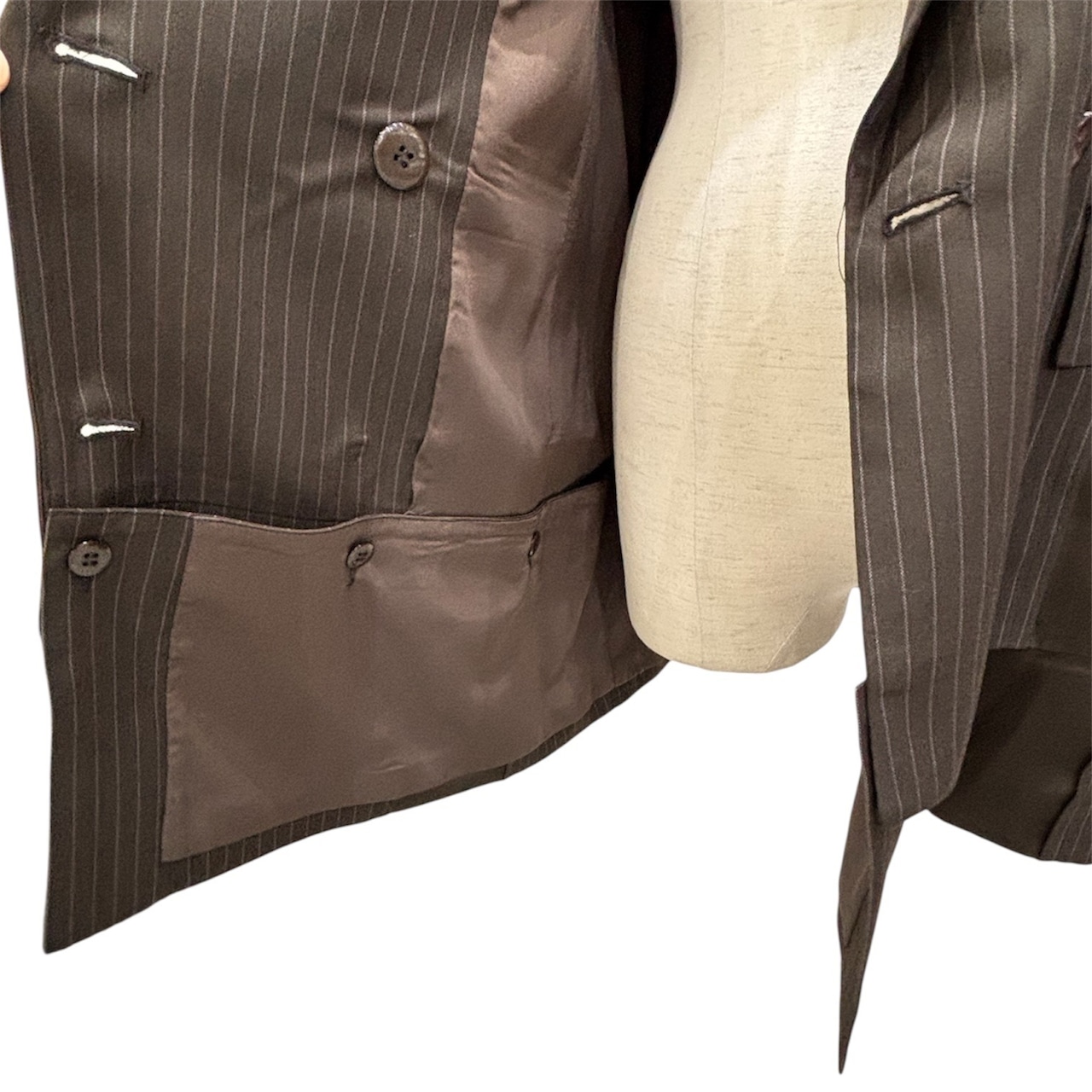 マットサテンの部分使いがアクセントになったストライプジャケット