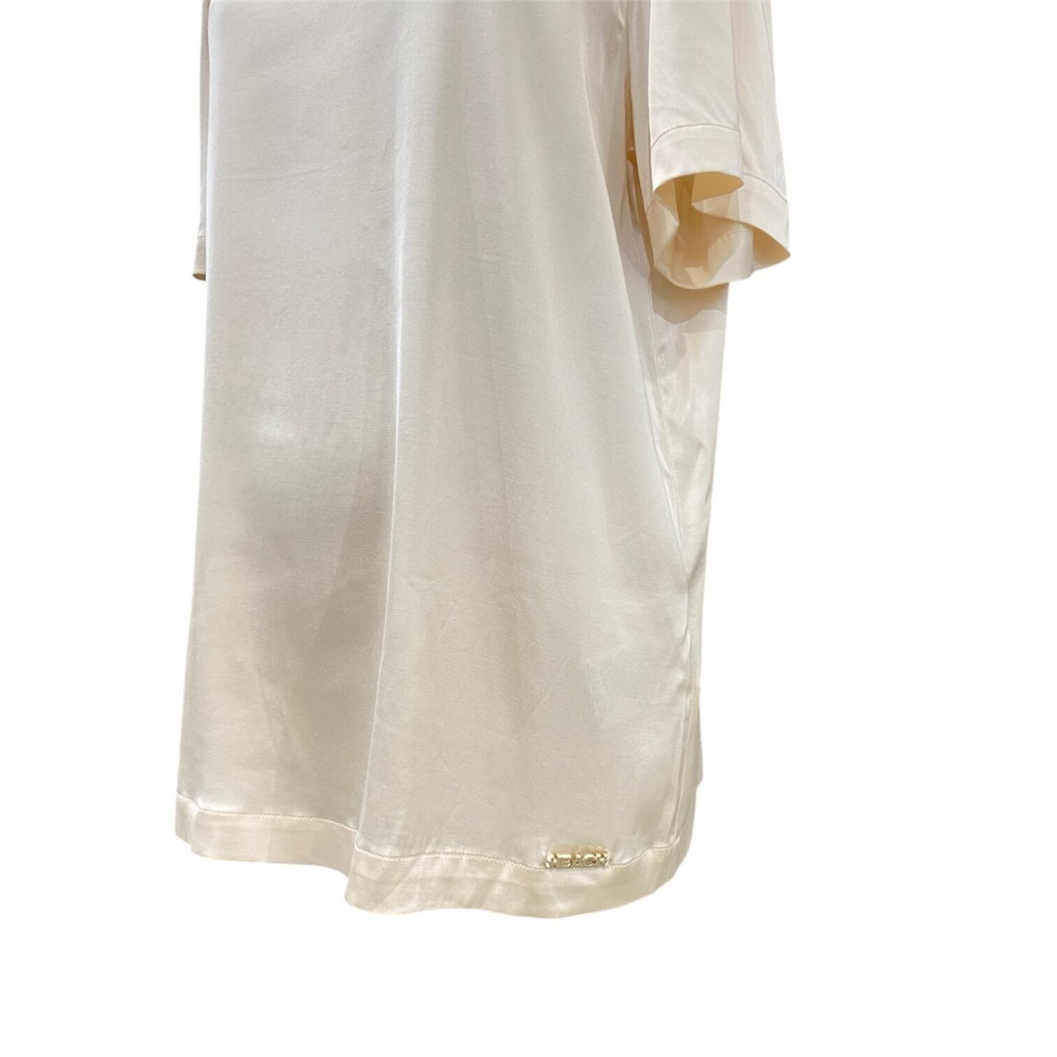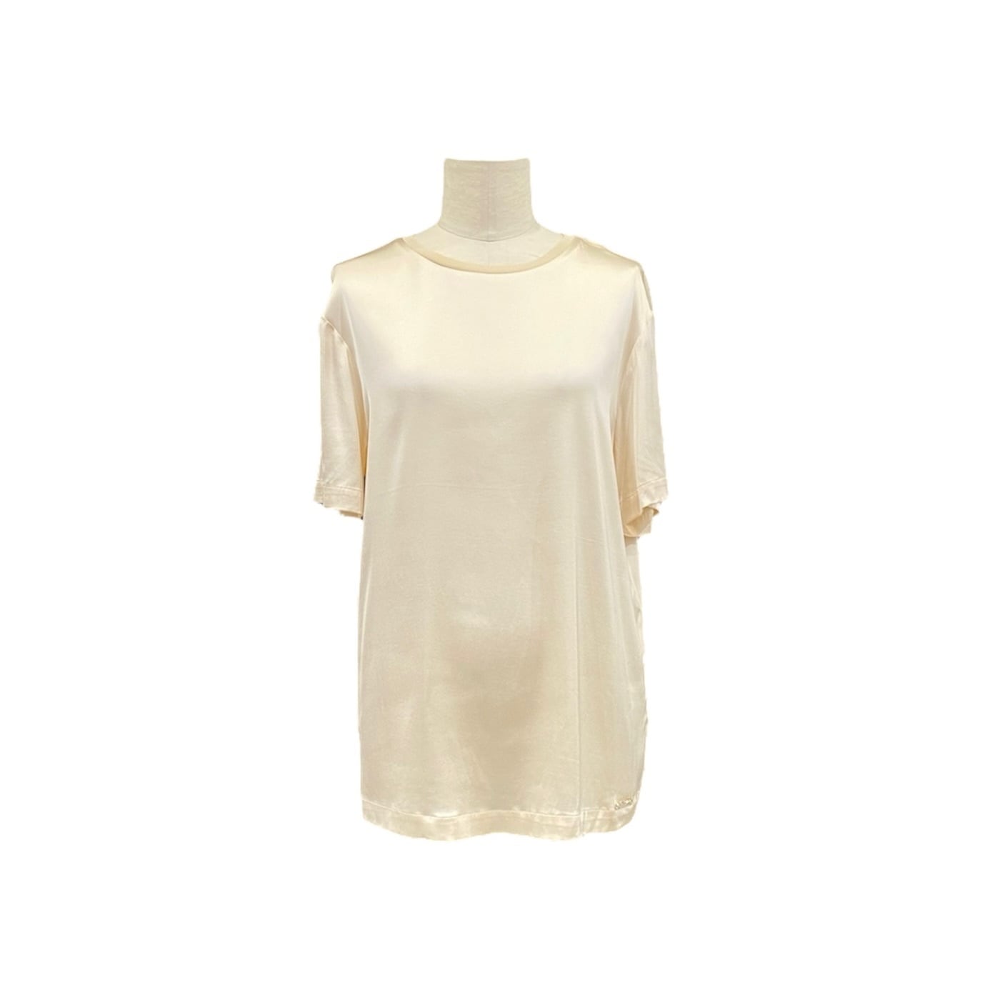 Tシャツ型のストレッチサテンのブラウス