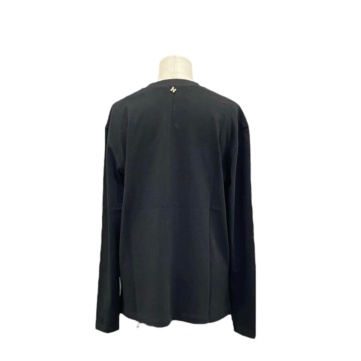 前後の中心に切替とステッチがポイントになったロングTシャツ