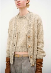 レザーのクミルボタンがアクセントになったカーディガン
