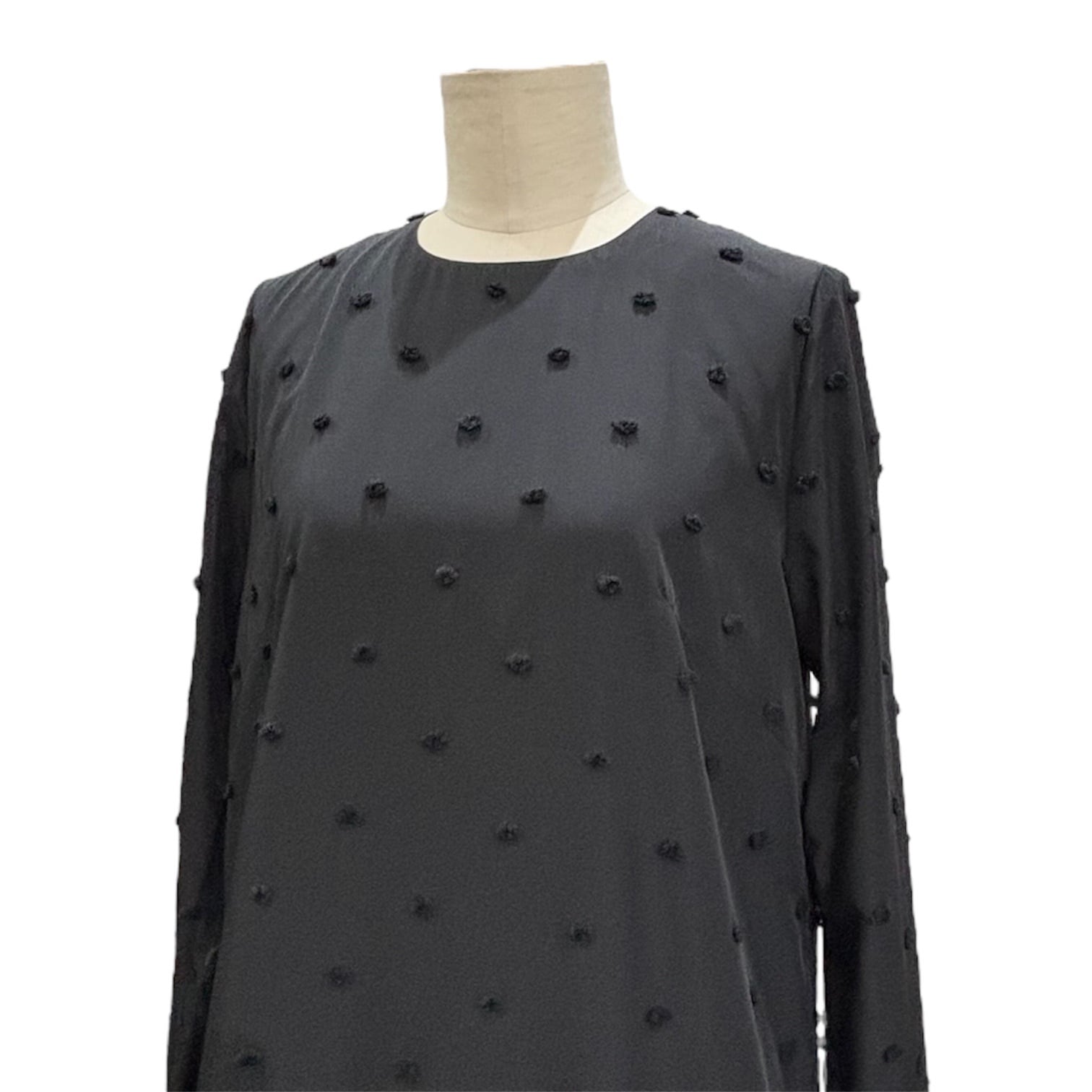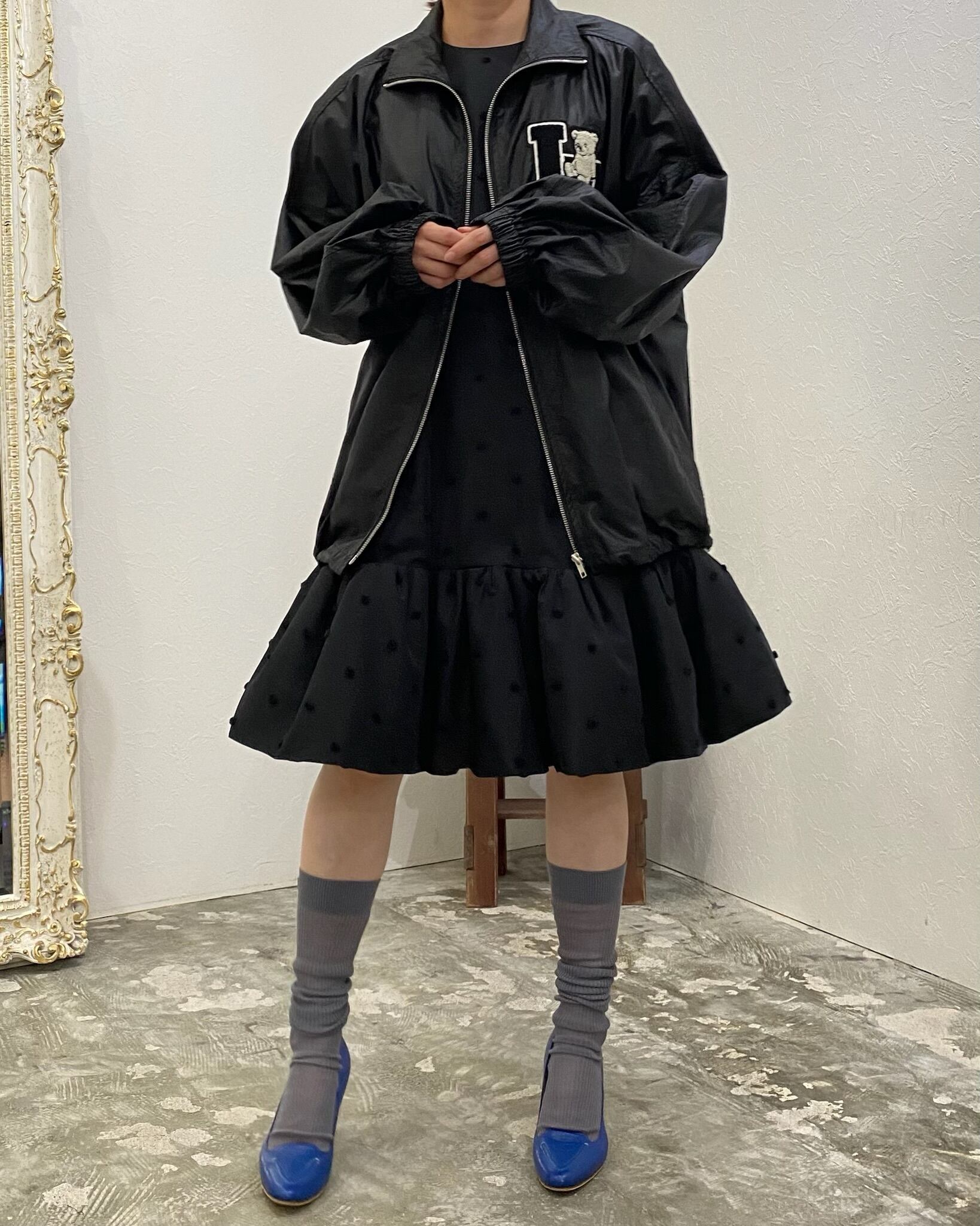 プリントではなく、同色の同素材でのデザインなのでかわいらし過ぎない印象が◎