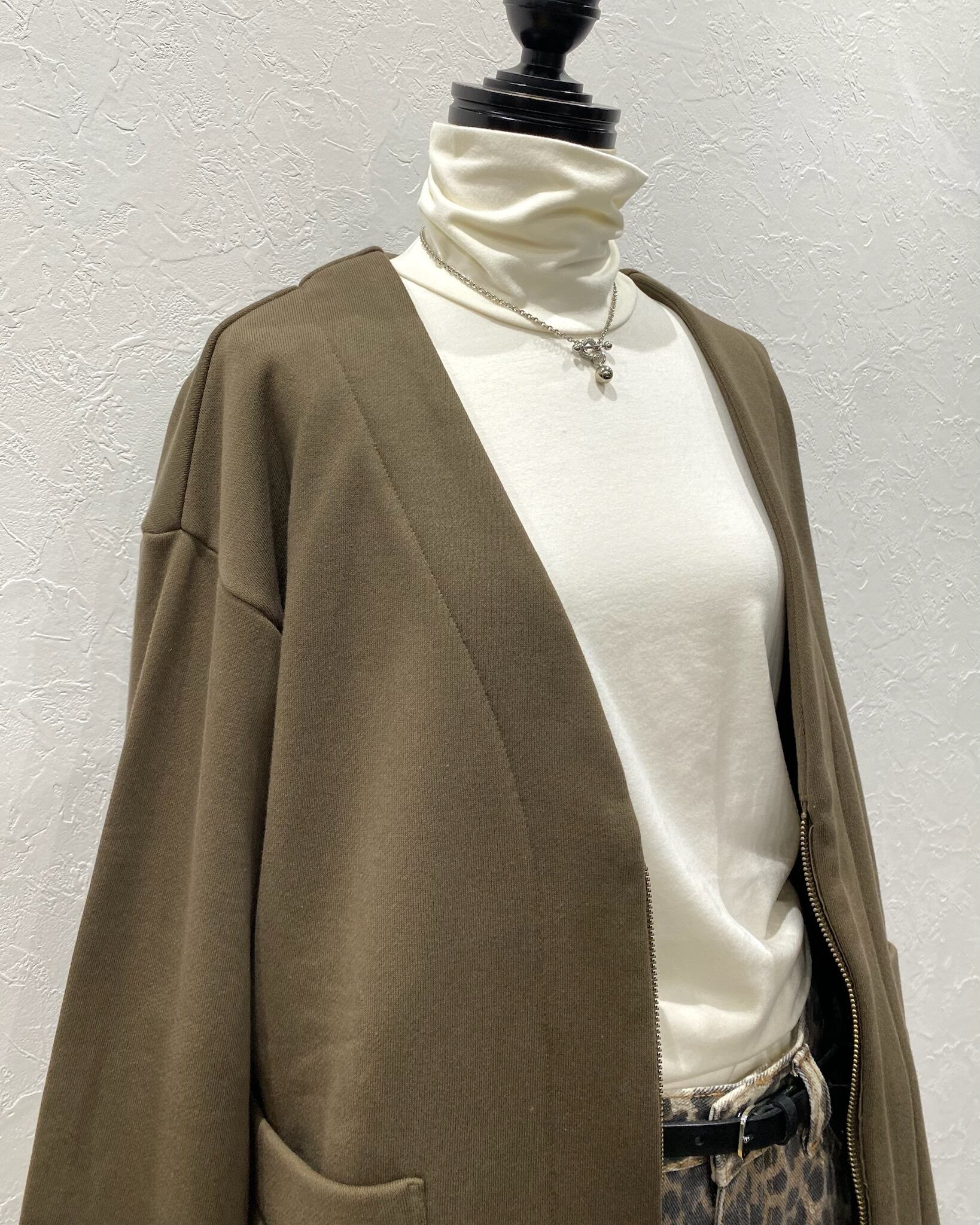 ルーズシルエットですが、深めのVネックとzip使いでスッキリした印象