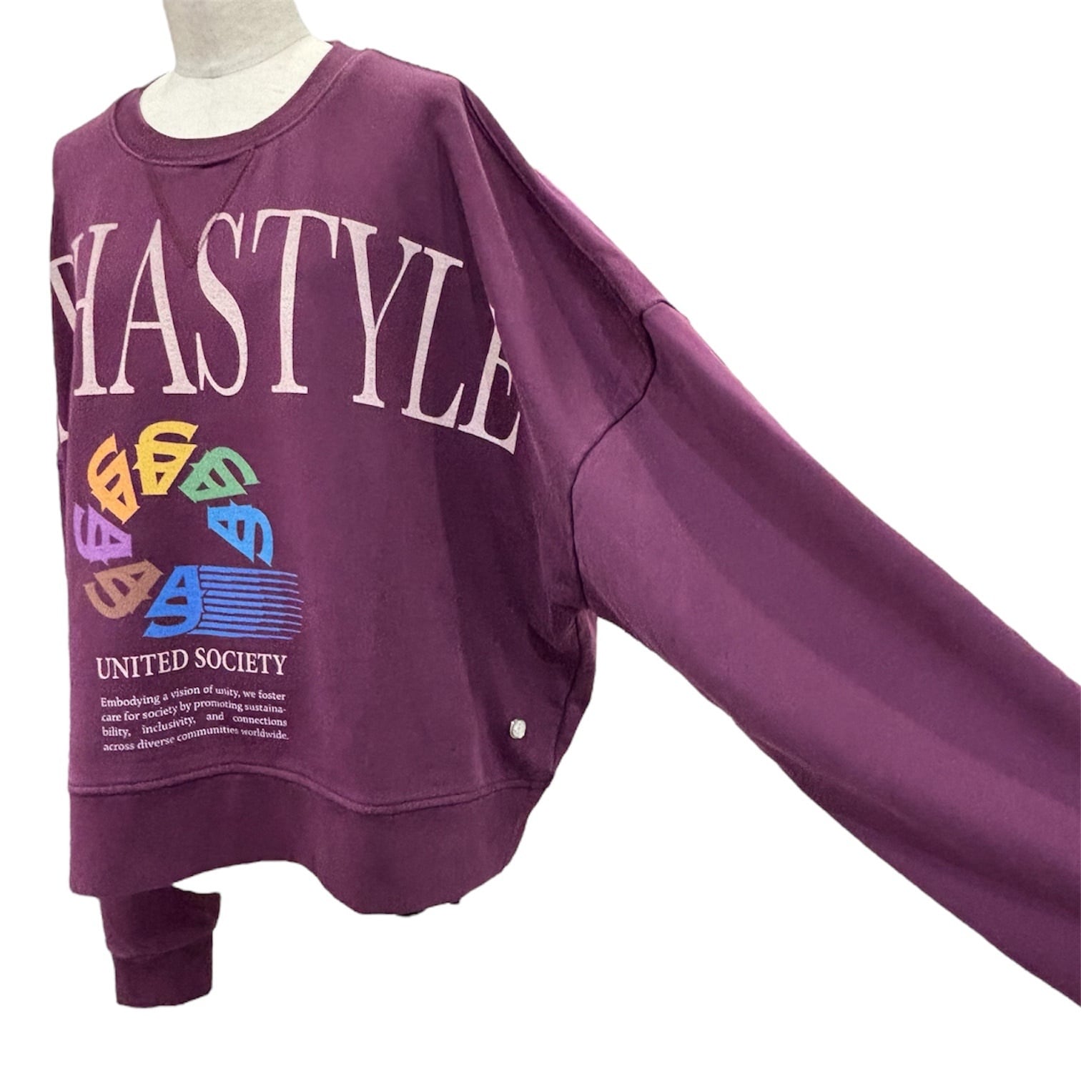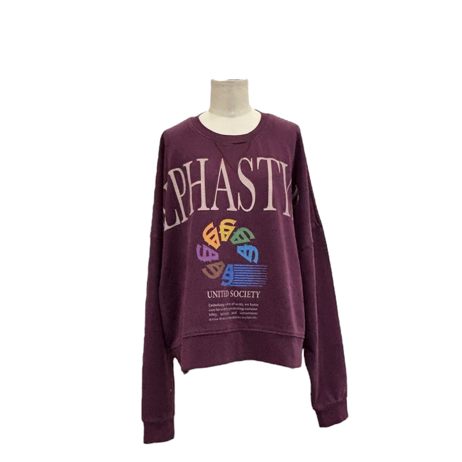 カラフルなロゴにアシッド加工のヘビーウェイトな素材の雰囲気がかわいいスエット