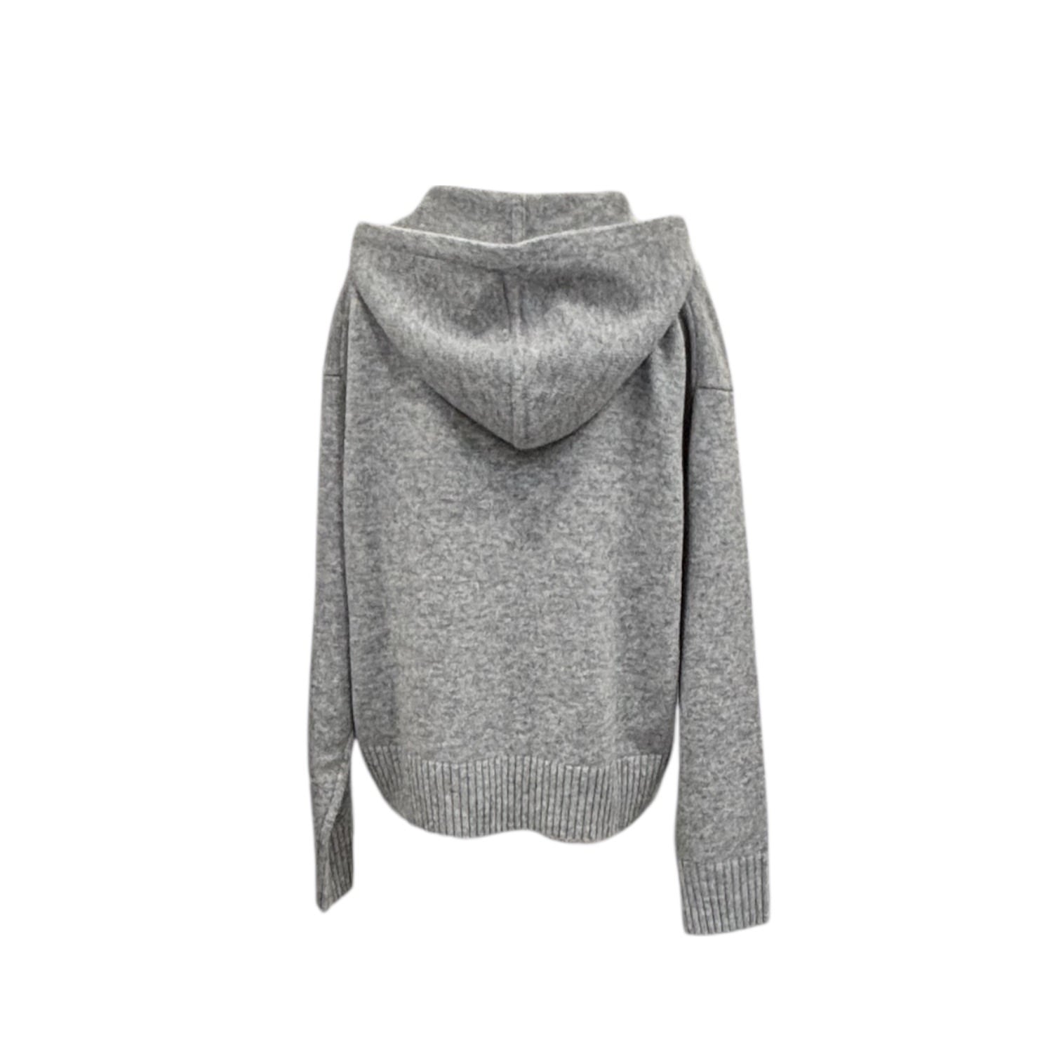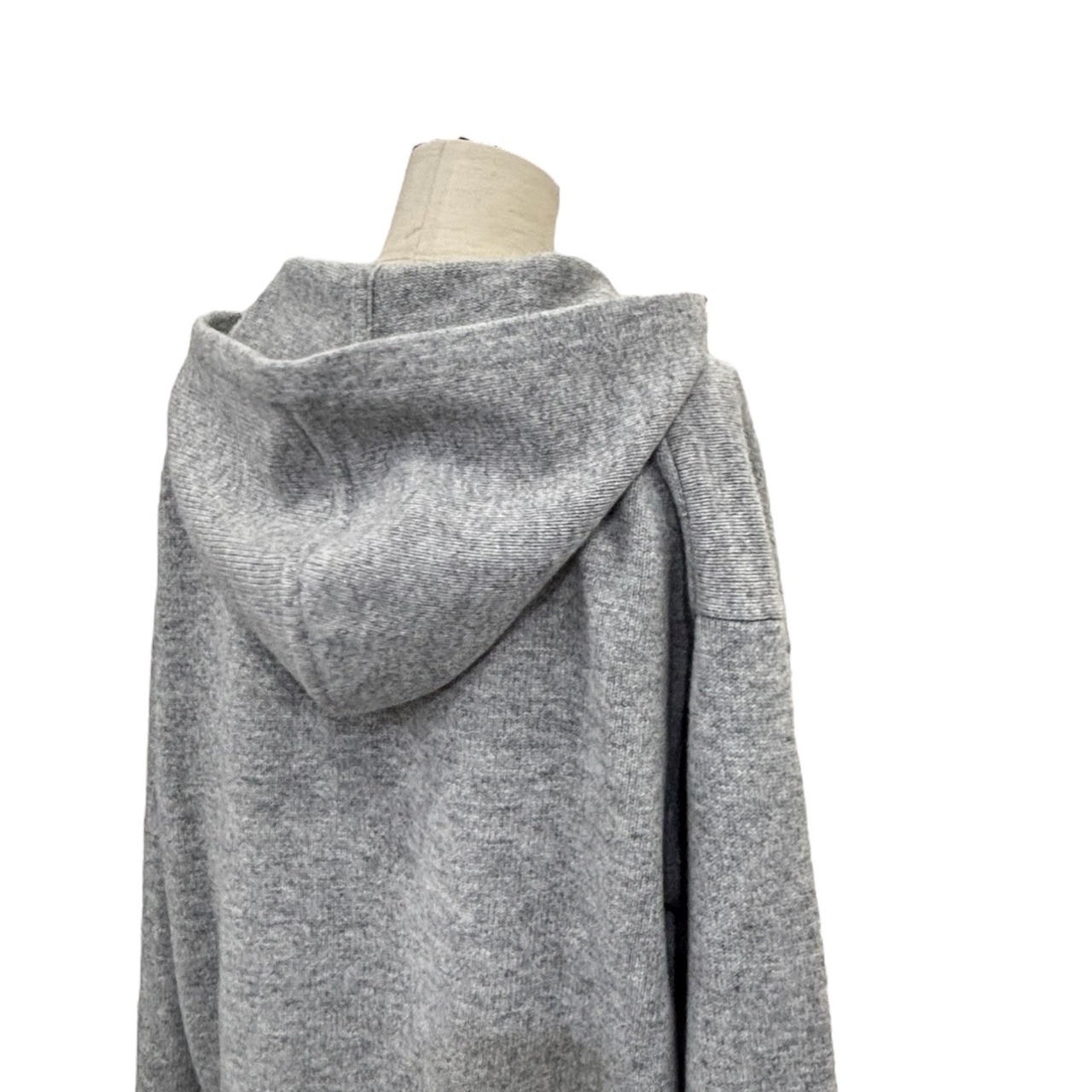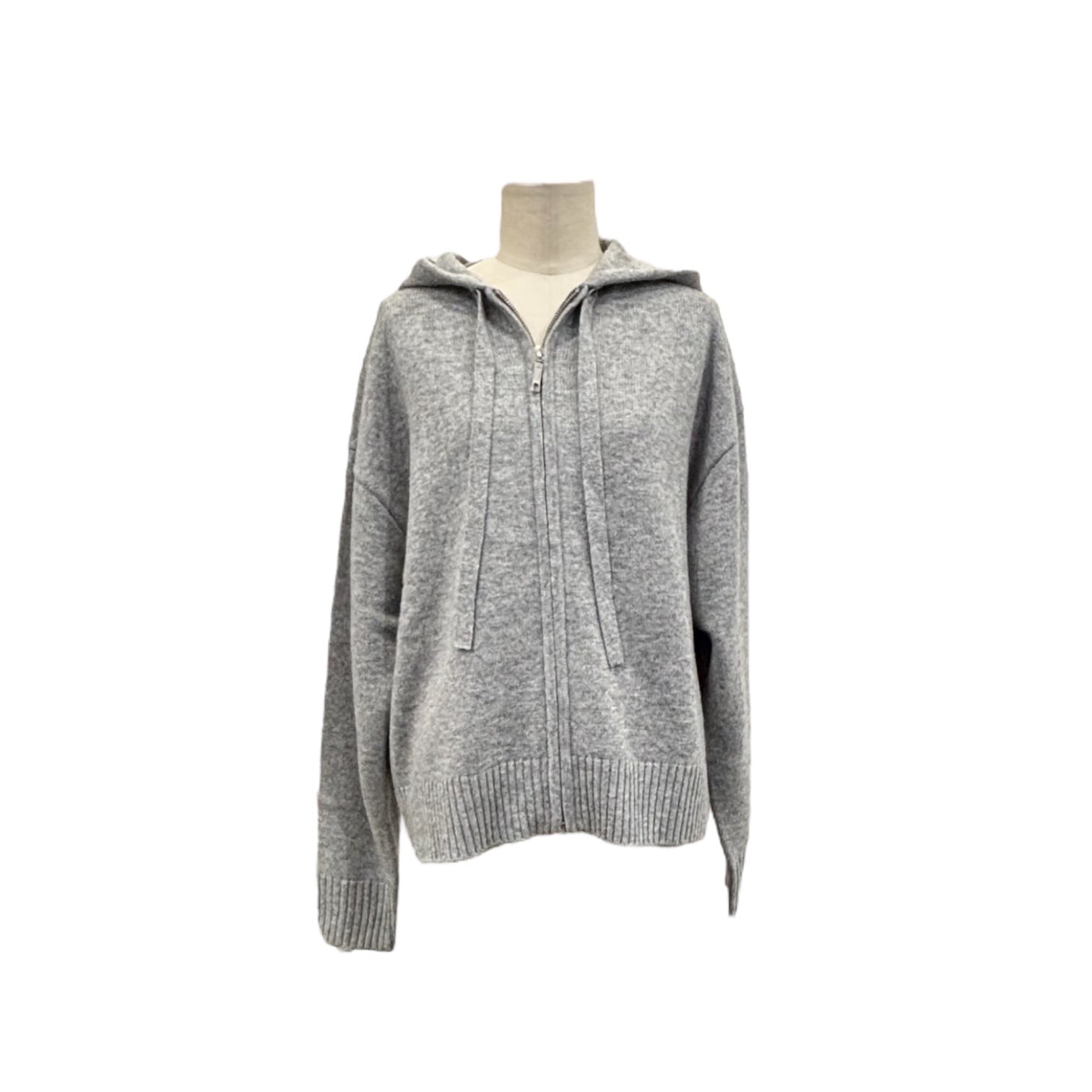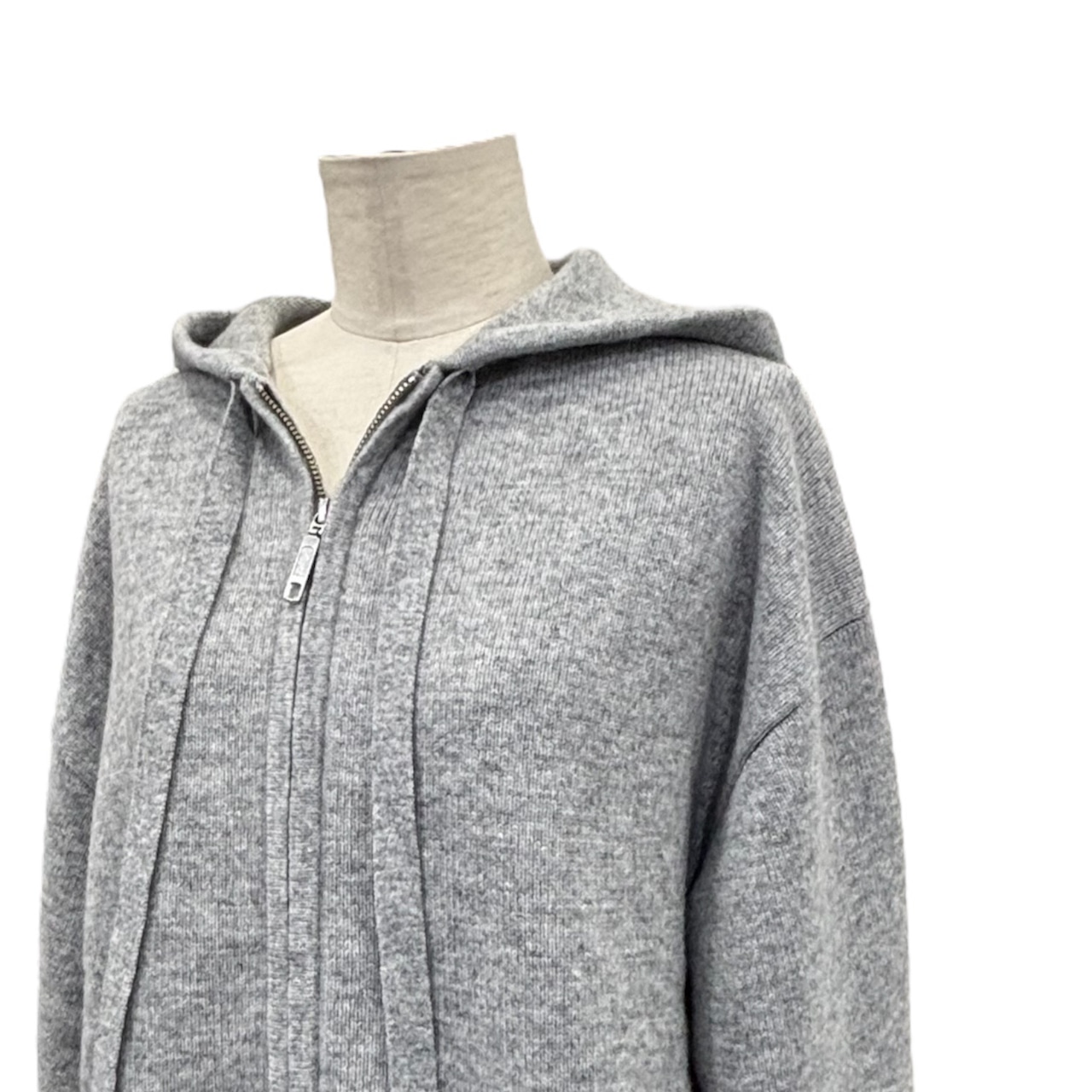 ジップアップのフーディもやわらかで上品なニット素材だと少しきれいめな印象
