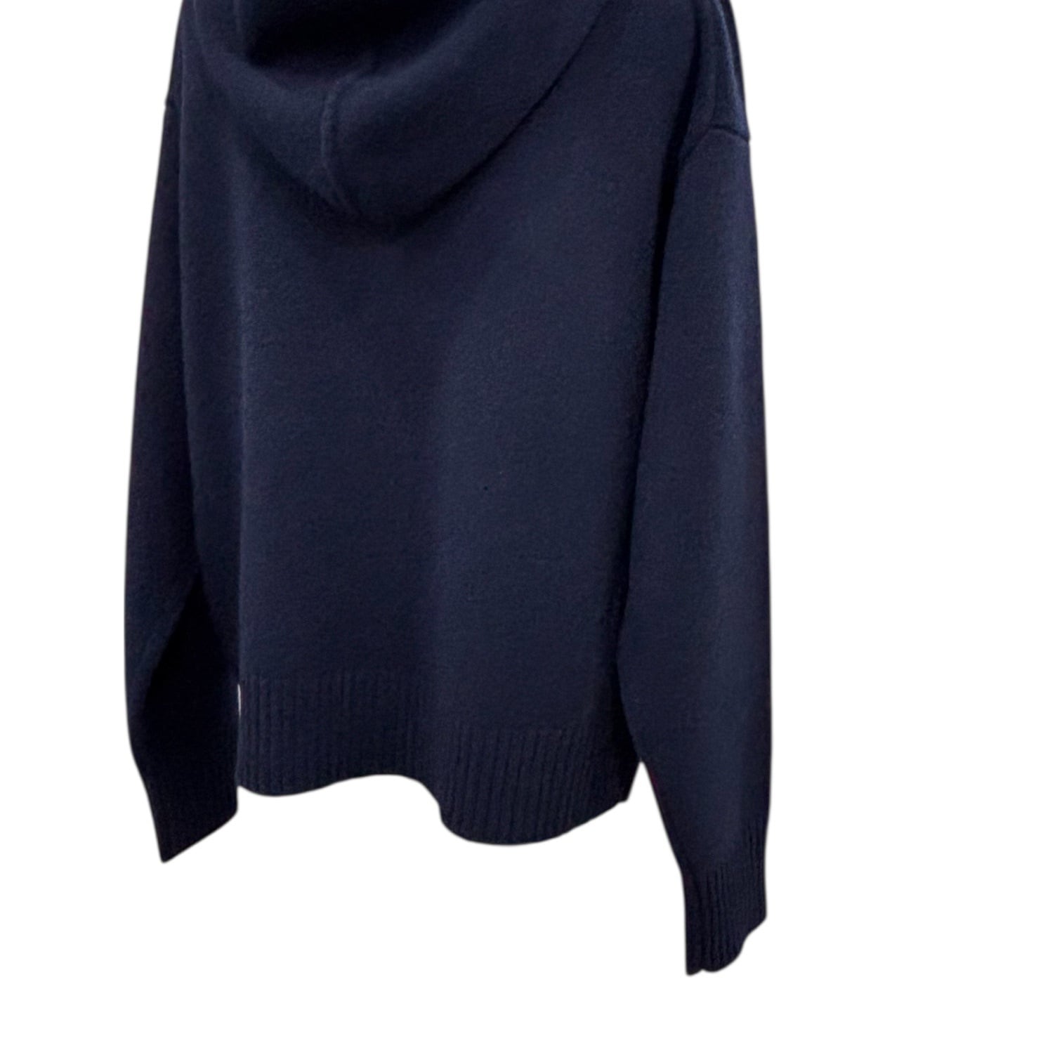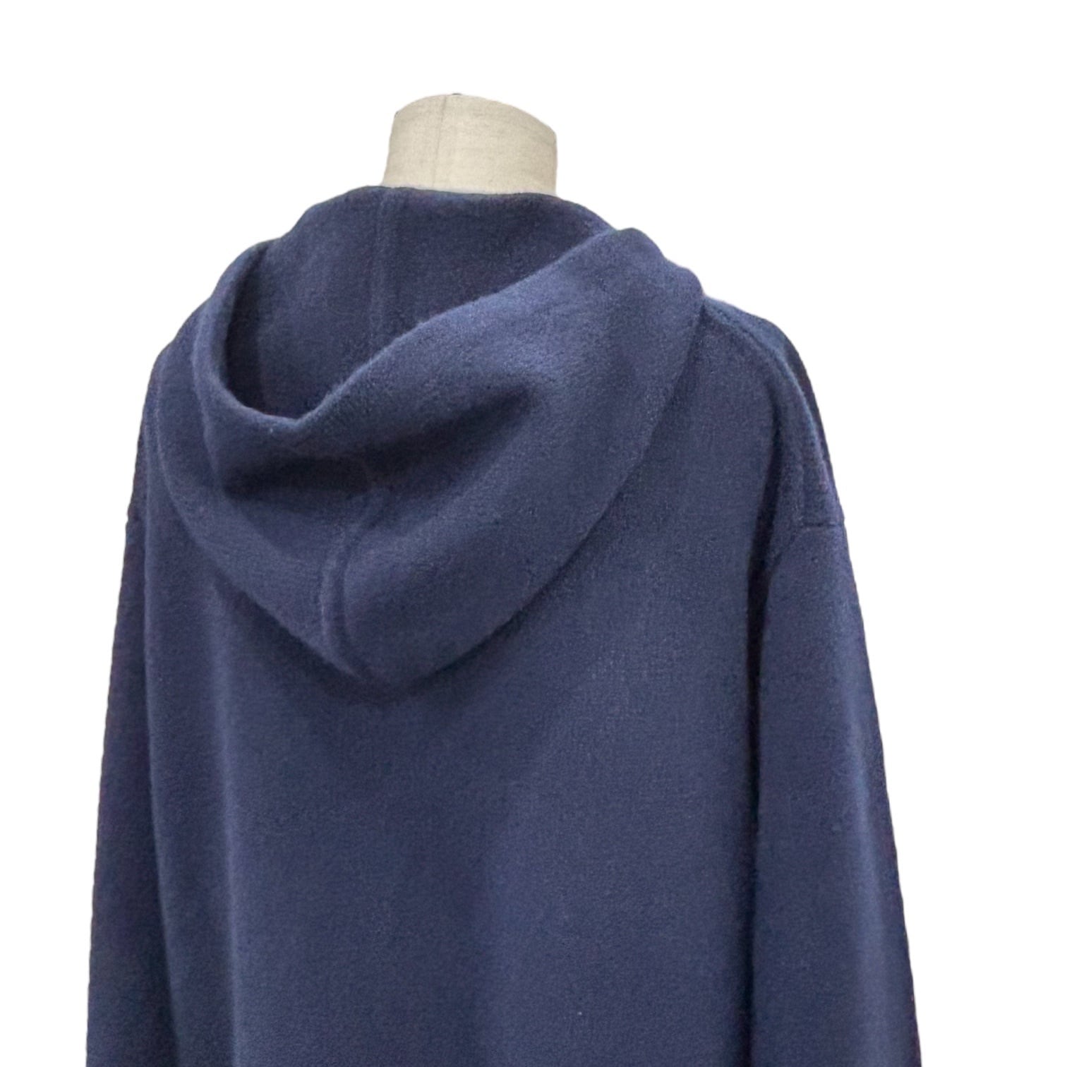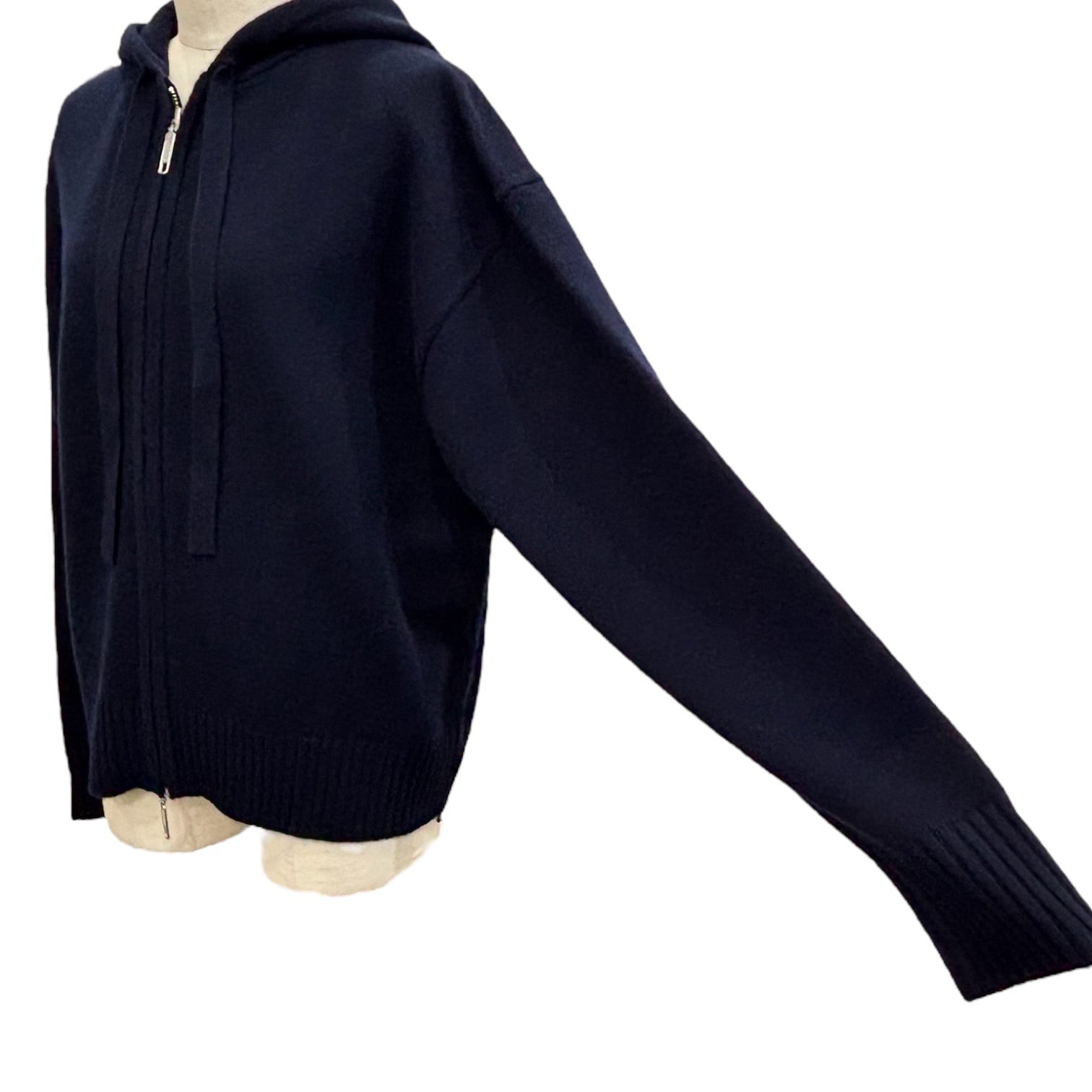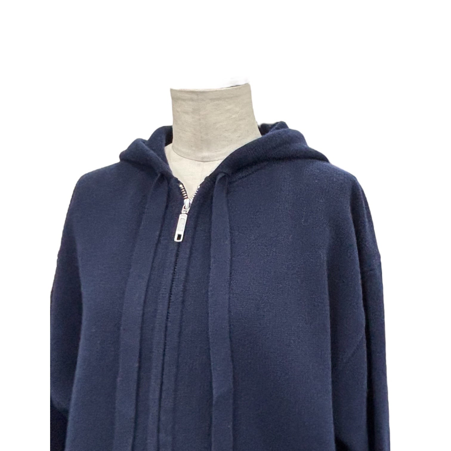 ジップアップのフーディもやわらかで上品なニット素材だと少しきれいめな印象