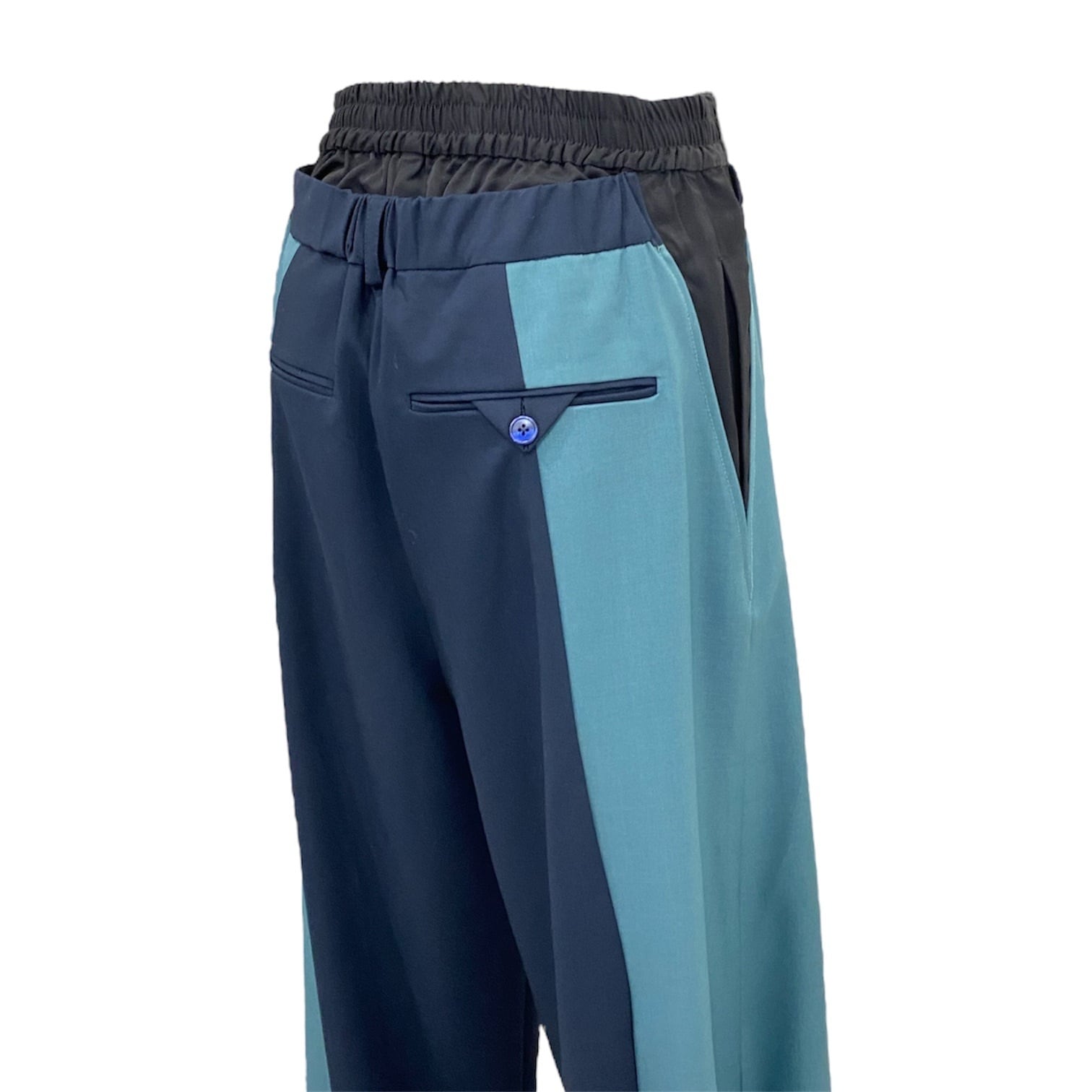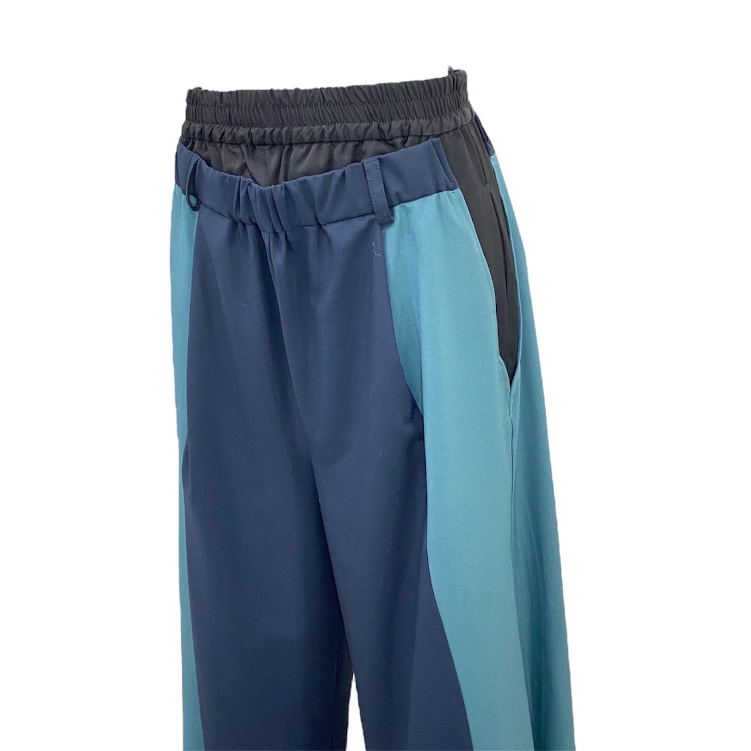 ウェーブラインで異素材バイカラーのデザインパンツ