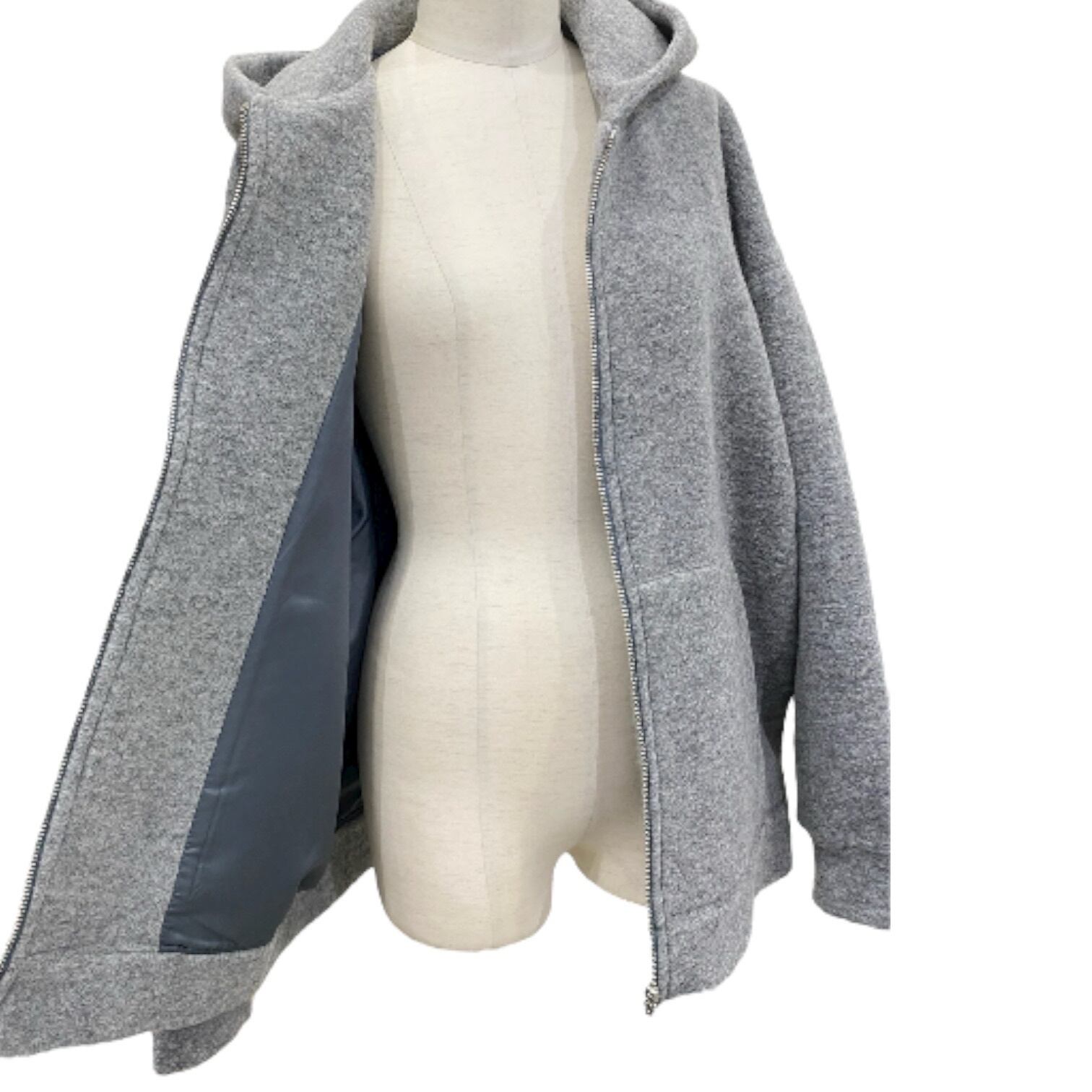 襟無しのVネックでボリュームはあるのにすっきりとした印象
