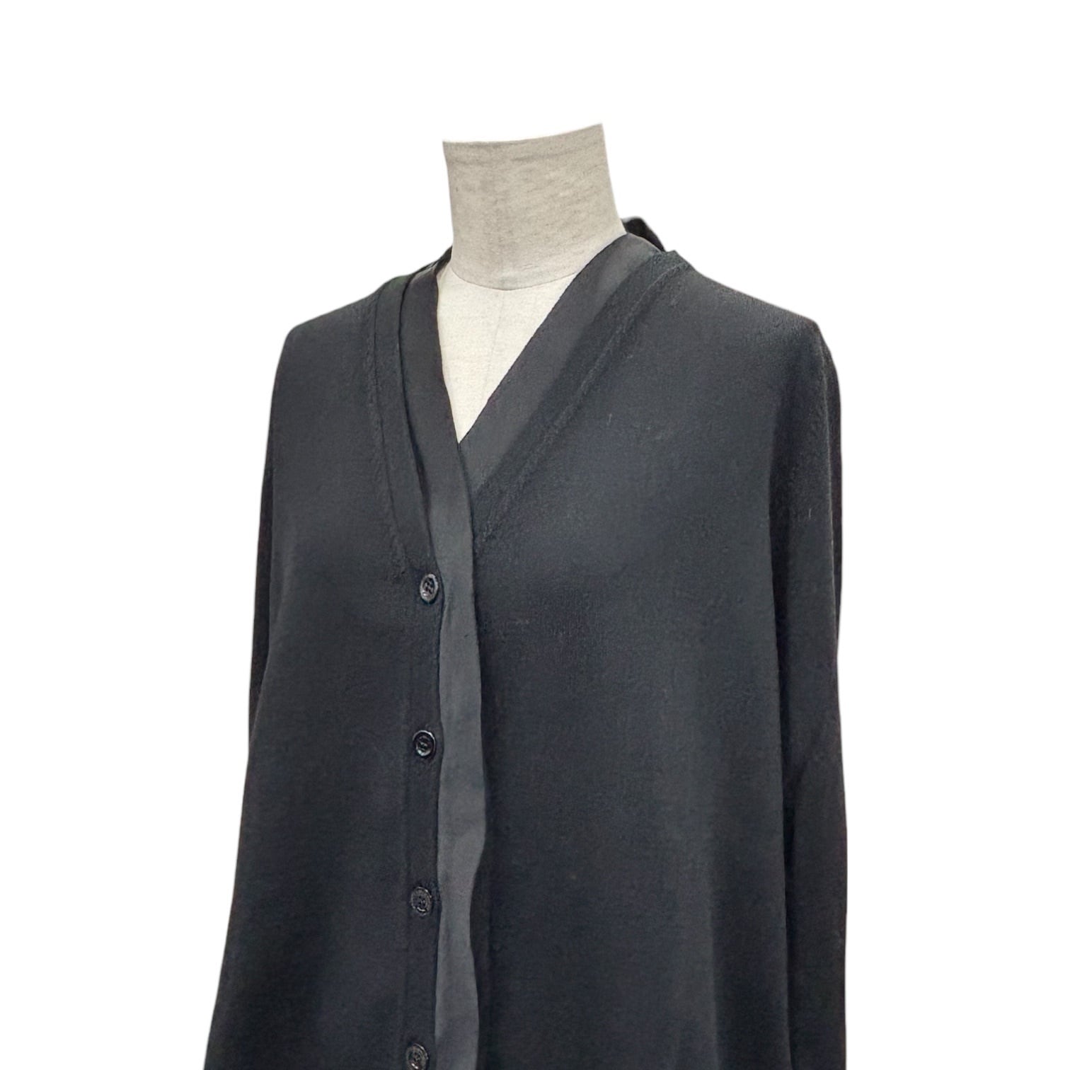 サテンのレイヤードデザインがアクセントになったカーディガン