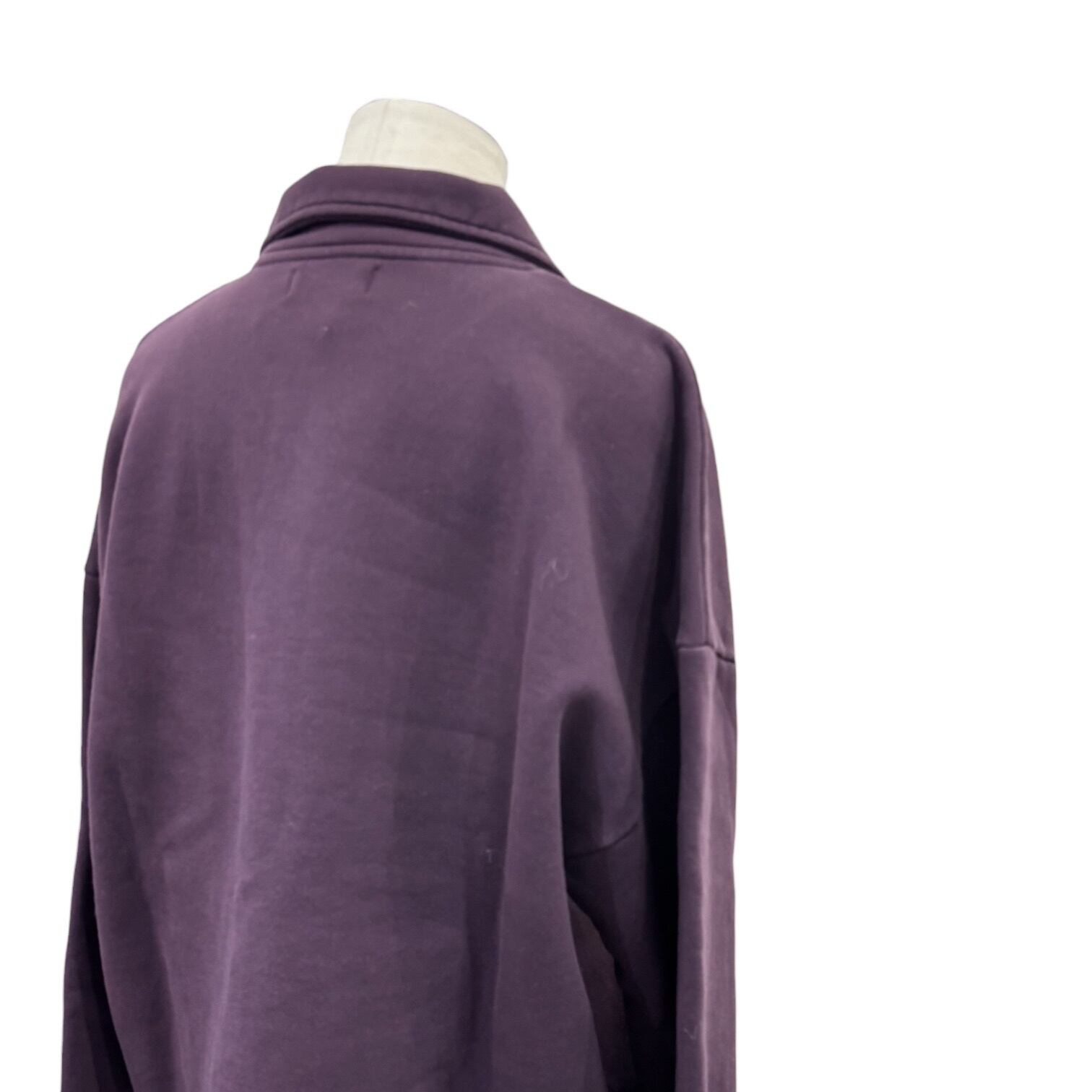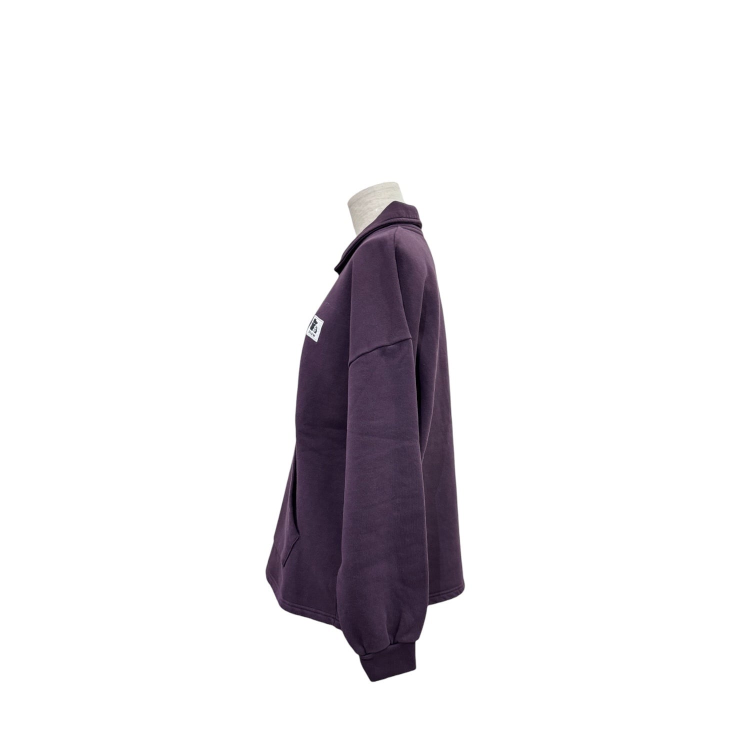 ワンポイントがかわいいダークプラムのハーフジップスエット