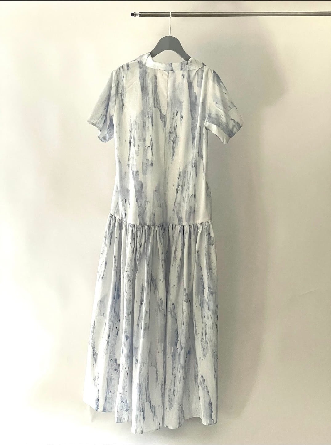 雲をイメージしてデザイナーが手書きしたアートプリントを使用したシャツワンピース