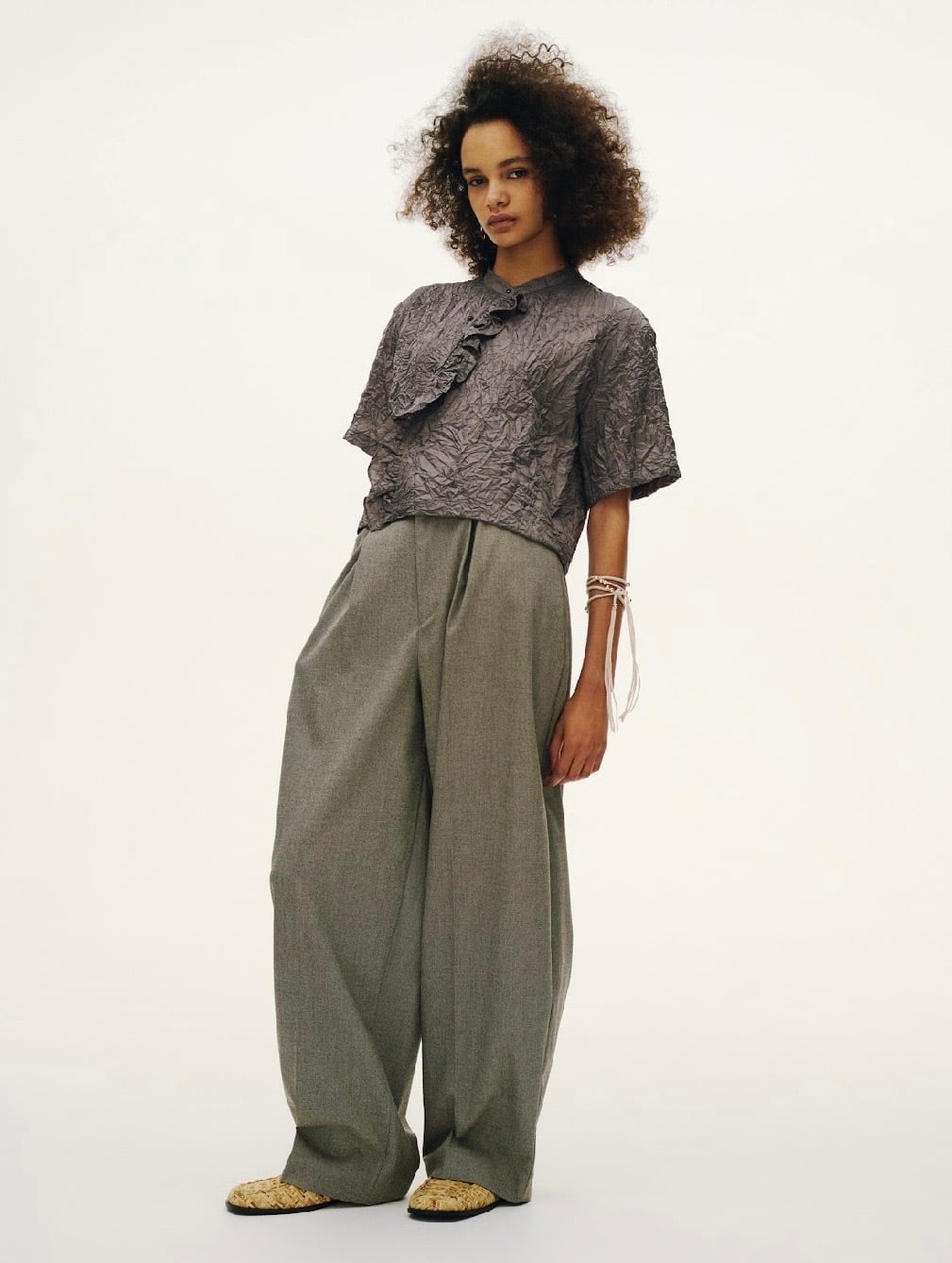 2026 年春夏コレクションは、フィジーと日本での文化的な体験から着想。休暇で訪れたフィジーでの滞在を通し、村の素朴な暮らしとリゾート地の華やかさの 対比に心を動かされ、「裸足で駆け回る子どもたち、家畜と自動車が行き交う風景、竹や木材ででき た家々の隣に突然現れる近代的な映画館。その光景は、物質的な豊かさと精神的な豊かさについて改めて考 えさせてくれるものでした」