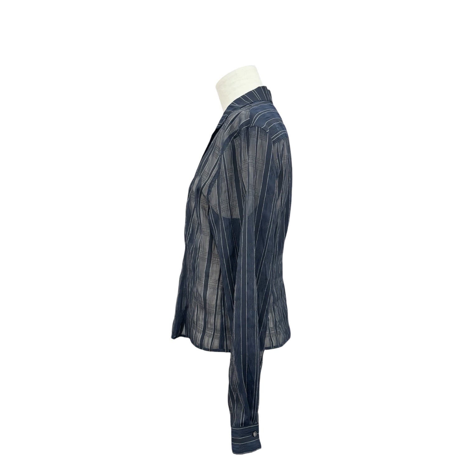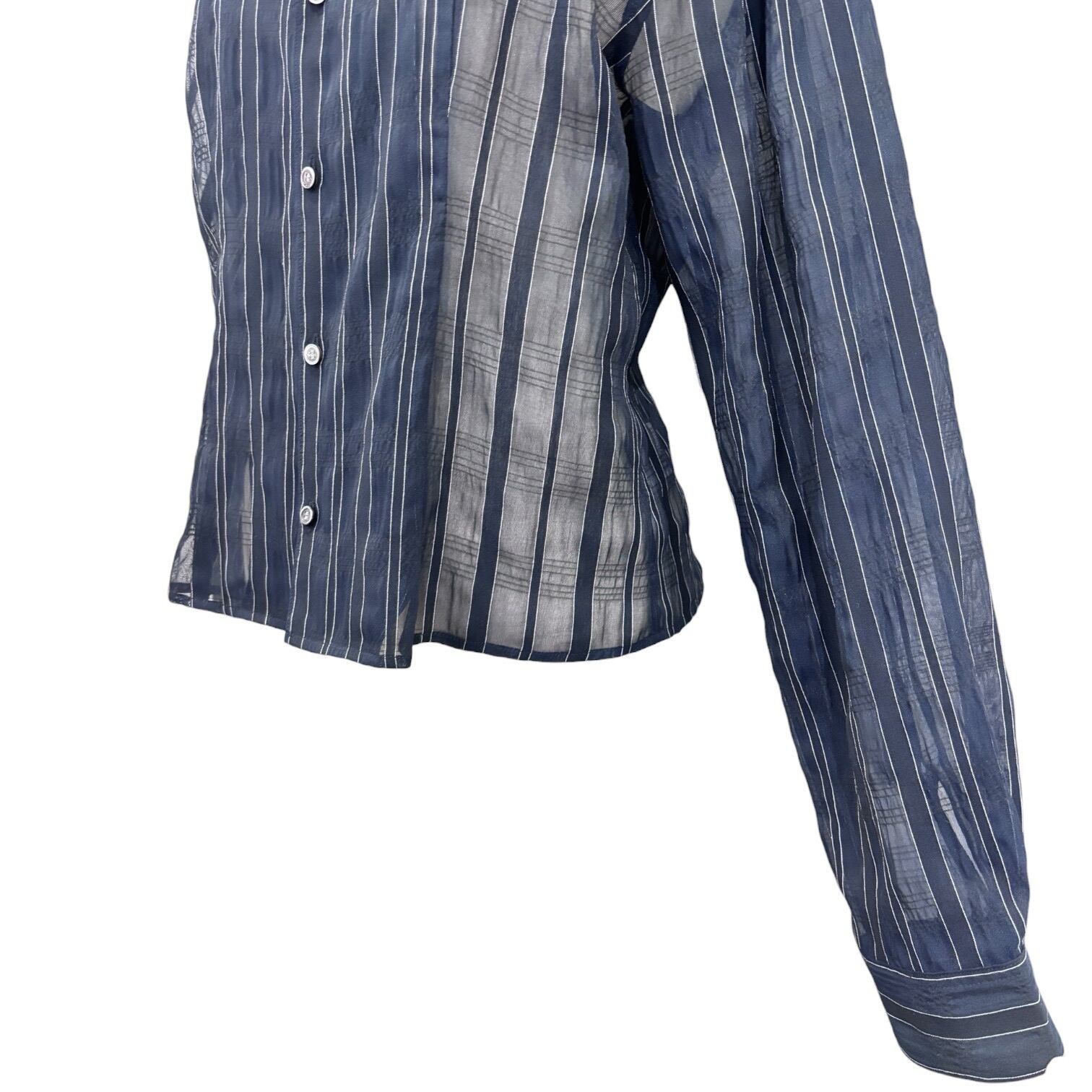 ダークネイビーのシアーストライプ素材がすてきなシャツ