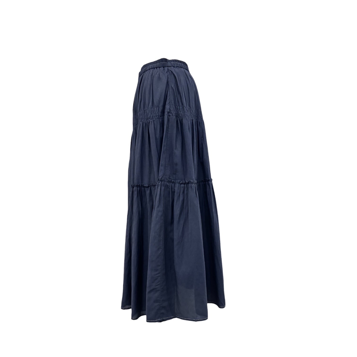 ウエストと裾に1本金糸ステッチが入っていて、さりげないアクセントになっています