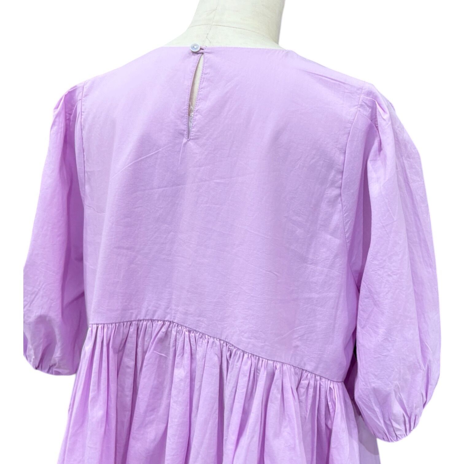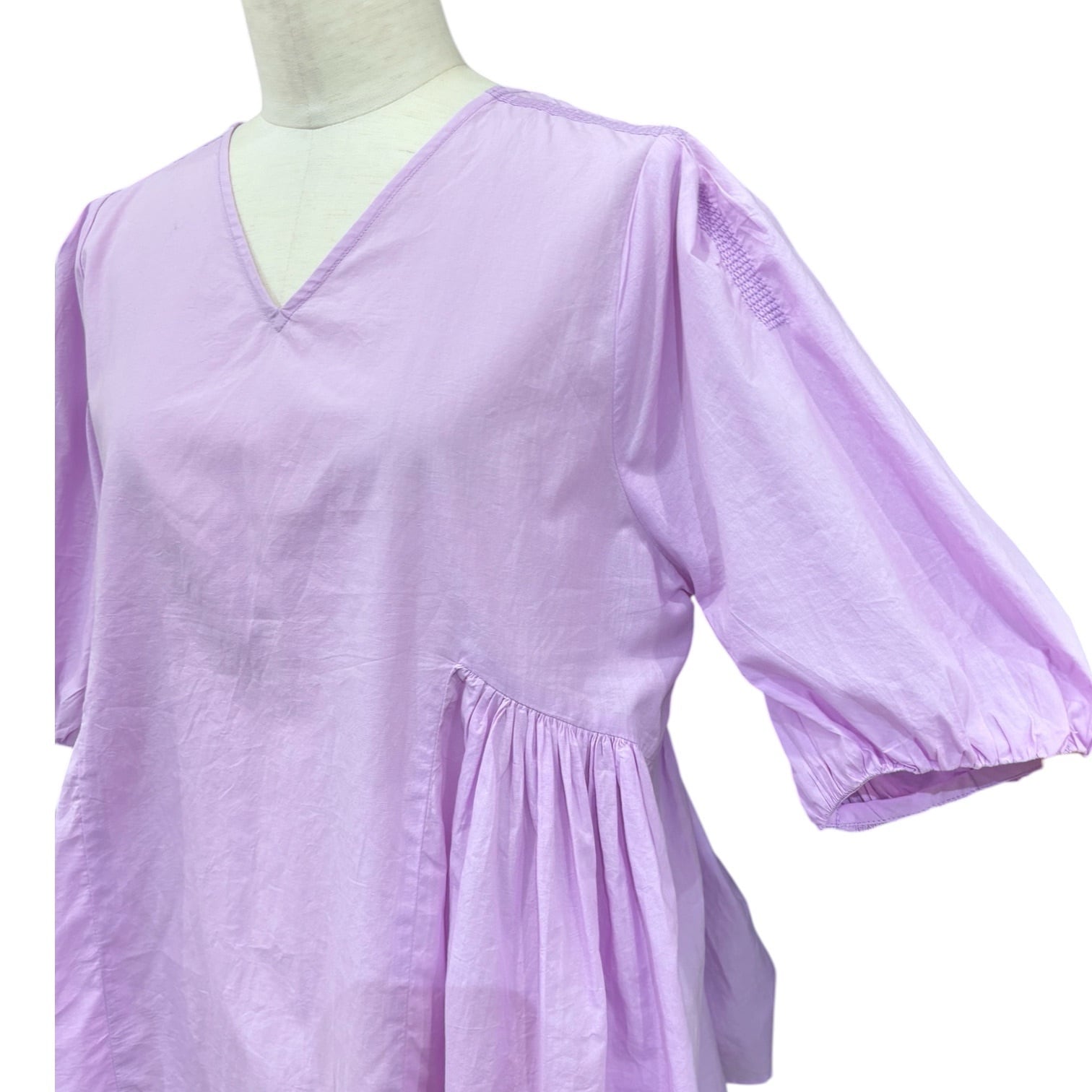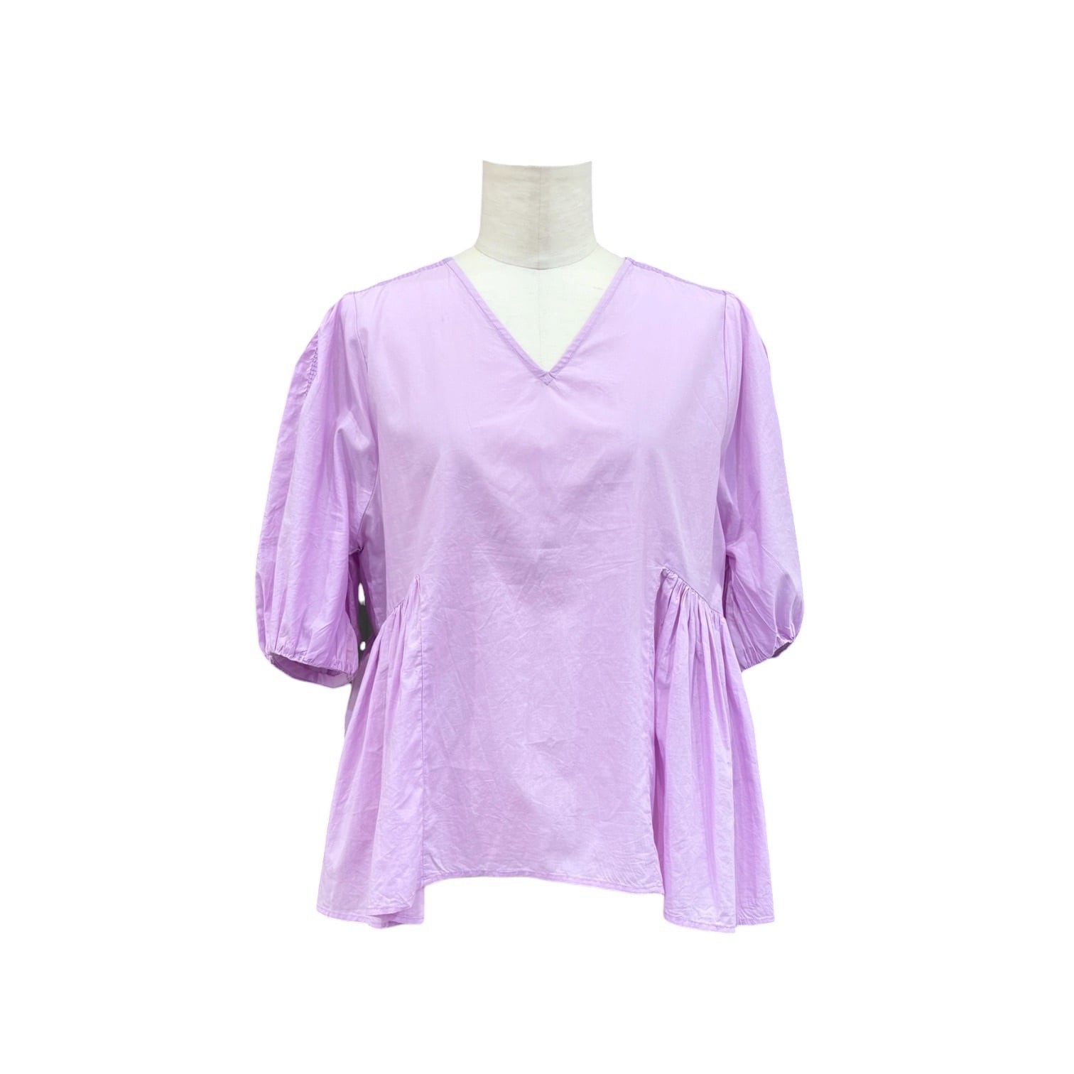 浅めのVネックにバルーンスリーブがかわいいブラウス
