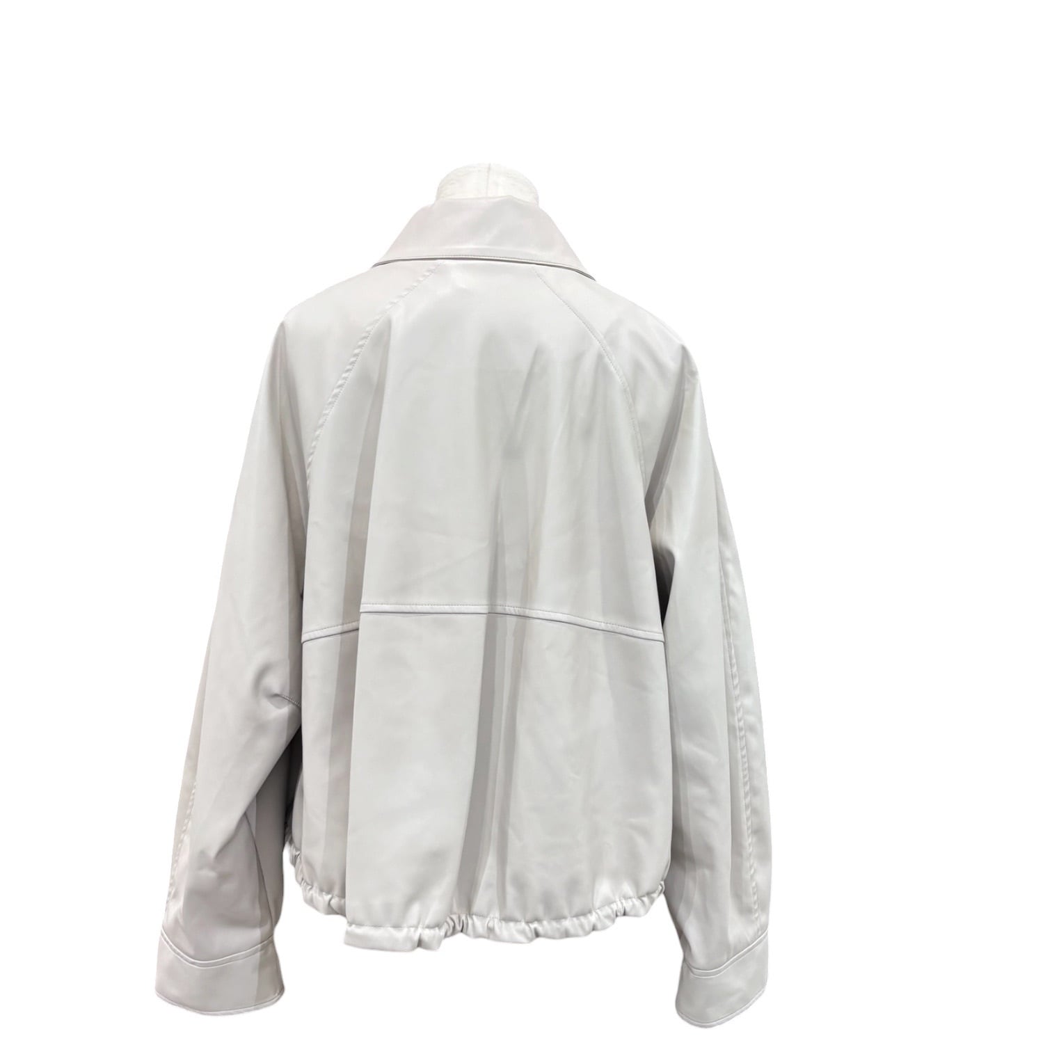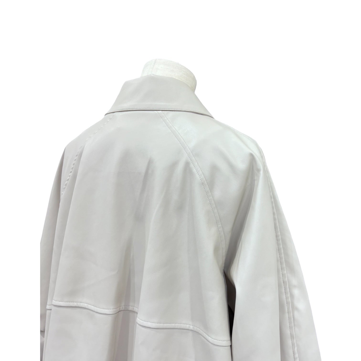 やわらかい雰囲気のホワイトベージュのエコレザーはコーディネートしやすく、季節の変わり目にあると便利なアイテムです