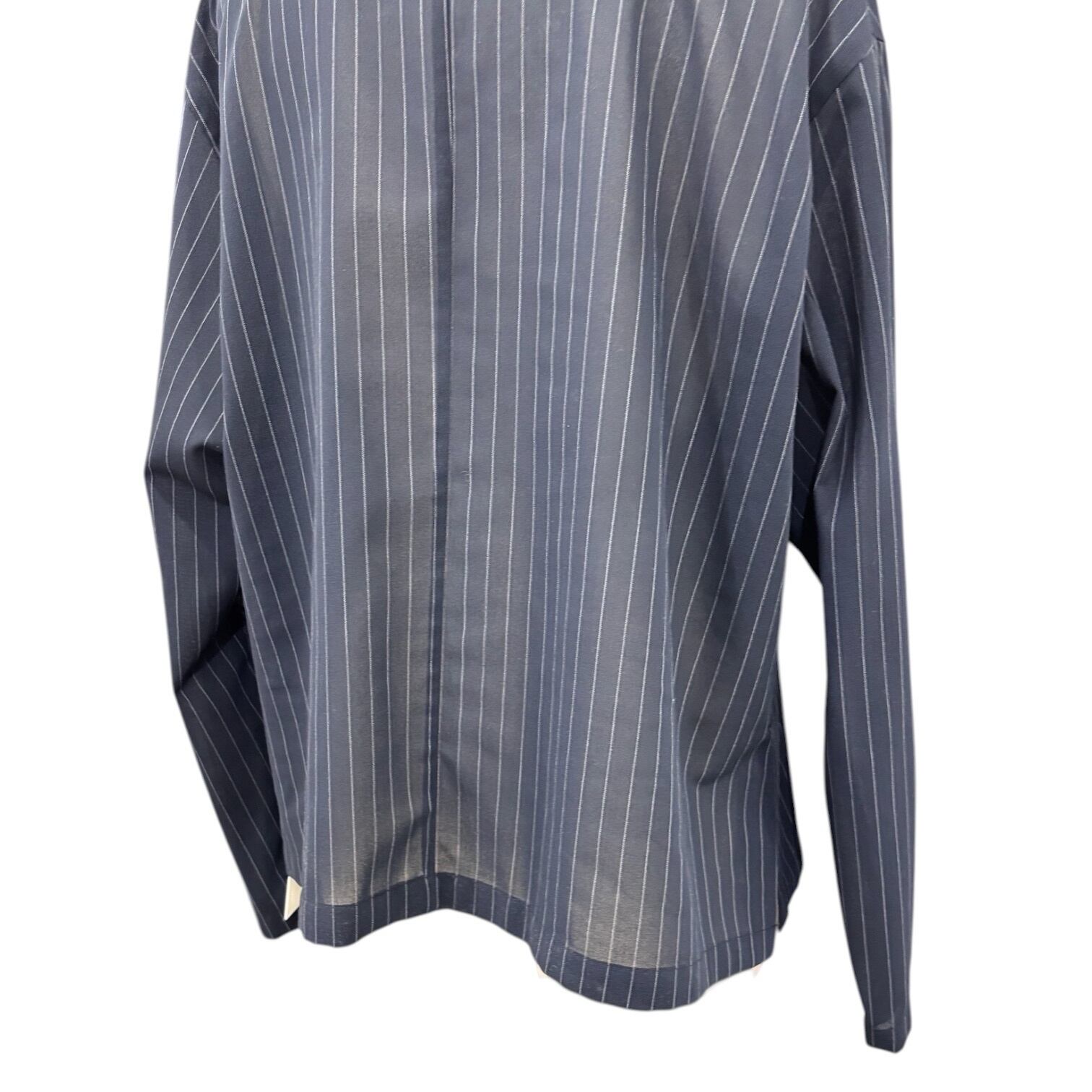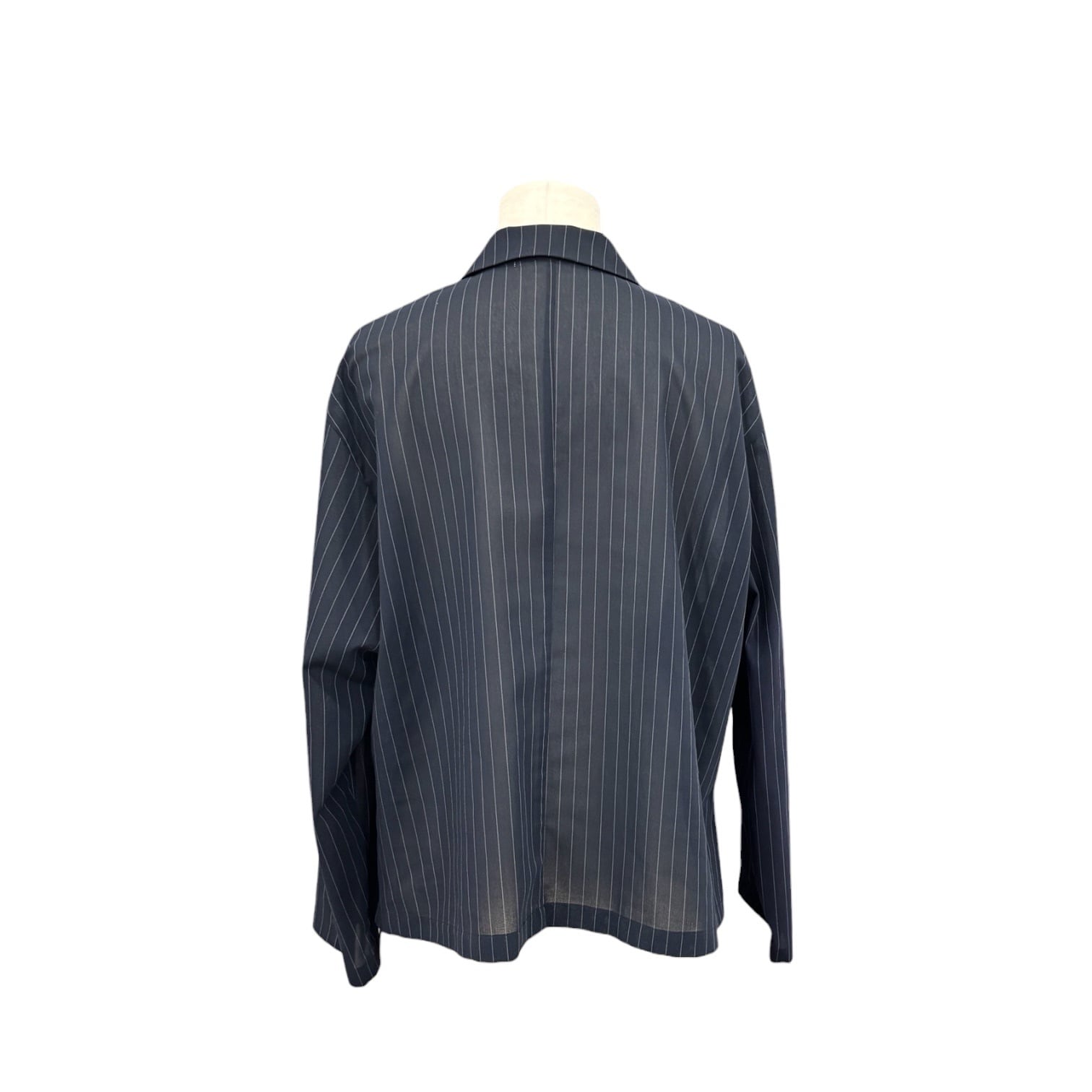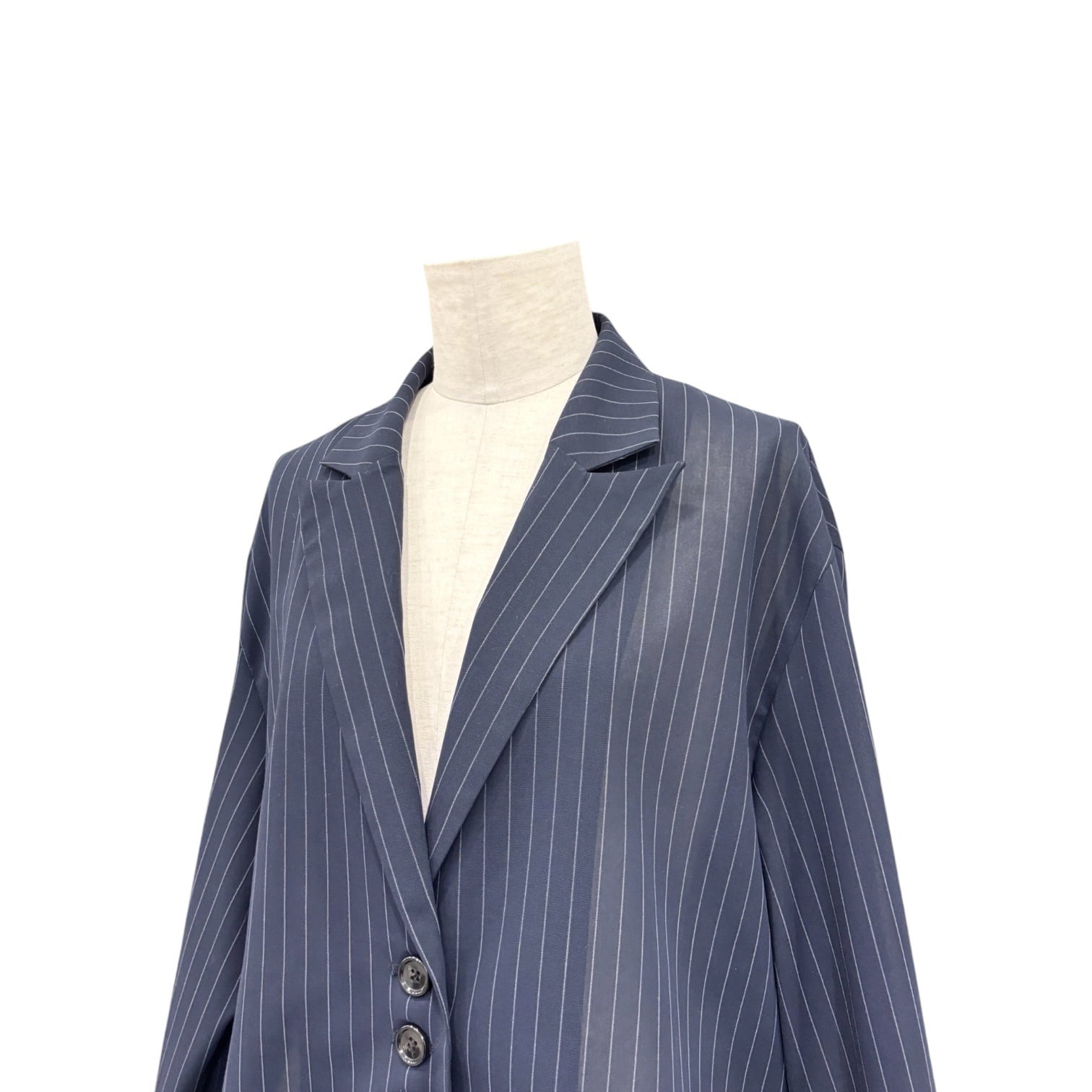 メンズライクなネイビーストライプもシアー感のある素材でモードな雰囲気